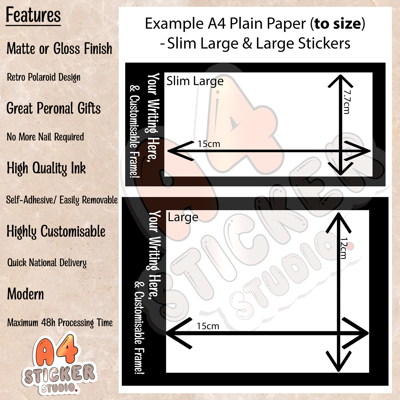 High Quality Printed Stickers Stickers & Labels Personalised Text Vinyl Label Sticker (x2) - Transparent Self-Adhesive & Water Resistant Sentence from £0.99 View Options Personalised Polaroid-Style Photo Sticker - Customisable Frames & Sizes with Custom Text & Finishes from £3.99 View Options Personalised Transparent Sticker - Add Your Own Logo or Image, Custom Square Vinyl Sticker, Water Resistant £8.99 2.5cm (8 Stickers) 3cm (6 Stickers) 3.5cm (5 Stickers) 4cm (5 Stickers) 4.5cm (4 Stickers) 5cm (4 Stickers) 5.5cm (3 Stickers) 6cm (3 Stickers) 6.5cm (3 Stickers) 7cm (2 Stickers) 7.5cm (2 Stickers) 8cm (2 Stickers) 8.5cm (2 Stickers) 9cm (2 Stickers) 9.5cm (2 Stickers) 10cm (2 Stickers) Add To Cart Added! Personalised QR Code Sticker - Add Your Link, Logo or Image, Custom Sizes & Designs from £6.99 View Options